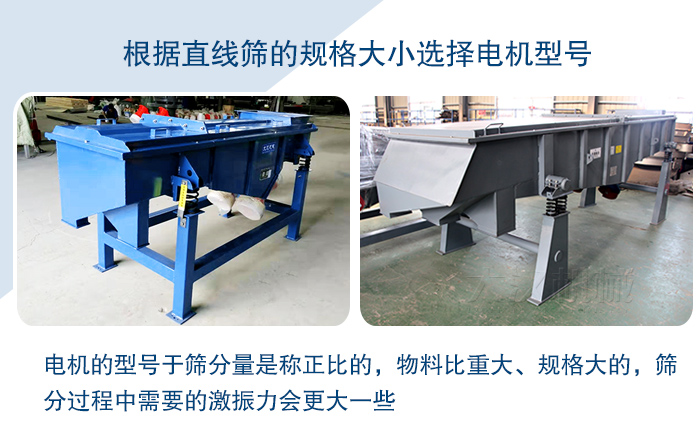 2,根據(jù)直線篩的規(guī)格大小選擇電機(jī)型號