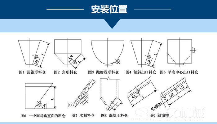 6、振動力的傳遞范圍一般為4~5m,用戶可根據料倉的大小,確定整個料倉應按裝的臺數。